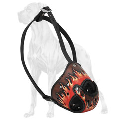 Then you should consider this Tremendous Leather Muzzle with Flames! Chic, style and uniqueness... Do you want these words to be related to your Great Dane? Be sure, your gorgeous pet and this fantastic muzzle will make a splendid company! Everyone will pay compliments to your canine and to you as his owner! Do you like this perspective? Then do not hesitate! This high-quality genuine leather is appreciated not only for its design! Only the best materials are used for its production! Moreover, all details are skillfully arranged and you get a real masterpiece instead of an ordinary muzzle!