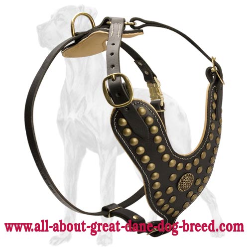 Leather Great Dane Harness with Studded Y-shaped Chest Plate -